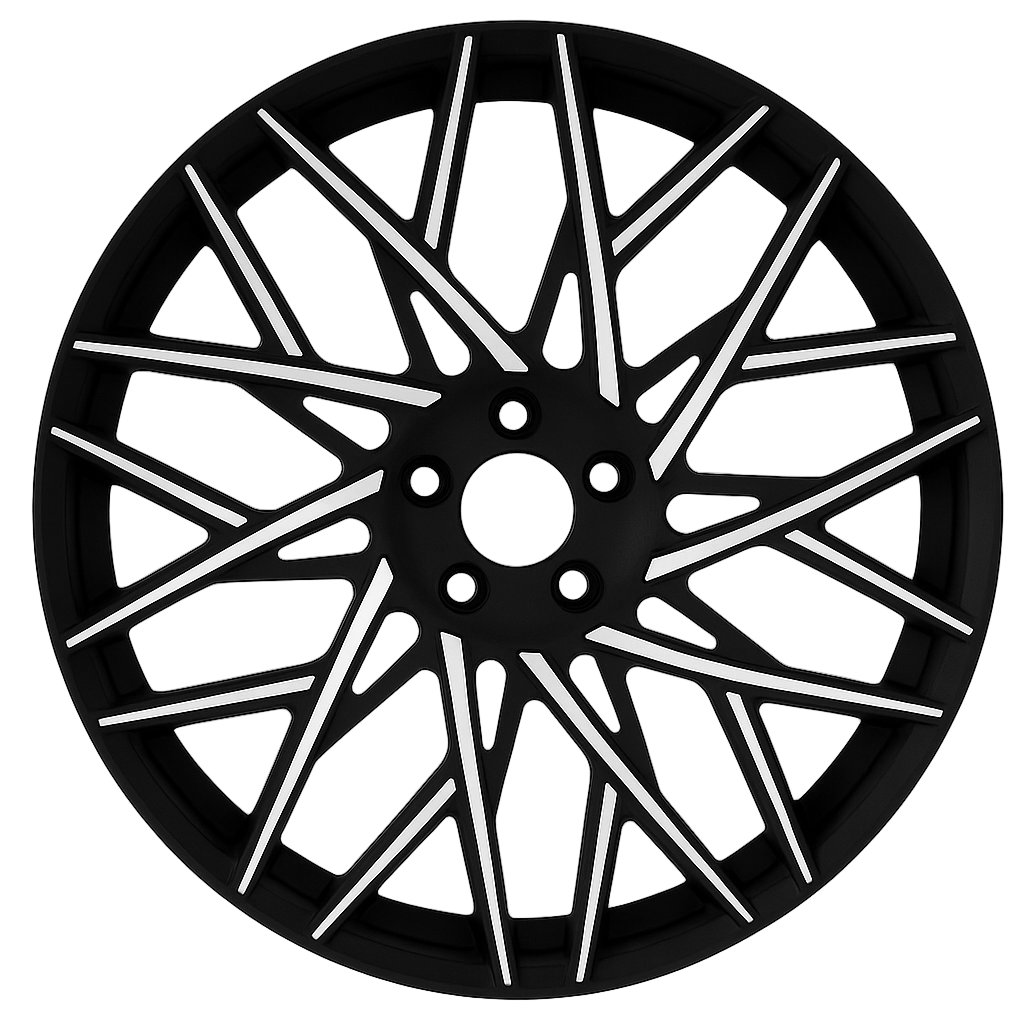 The V-034 multi-spoke wheel delivers balanced performance through its optimized spoke geometry and structural design. Each spoke is strategically positioned to distribute loads efficiently while minimizing rotational mass. This configuration enhances acceleration response and reduces unsprung weight for improved handling dynamics. The multi-spoke pattern provides superior strength-to-weight ratio, making it an excellent choice for drivers seeking responsive performance without compromising durability or aesthetic appeal.